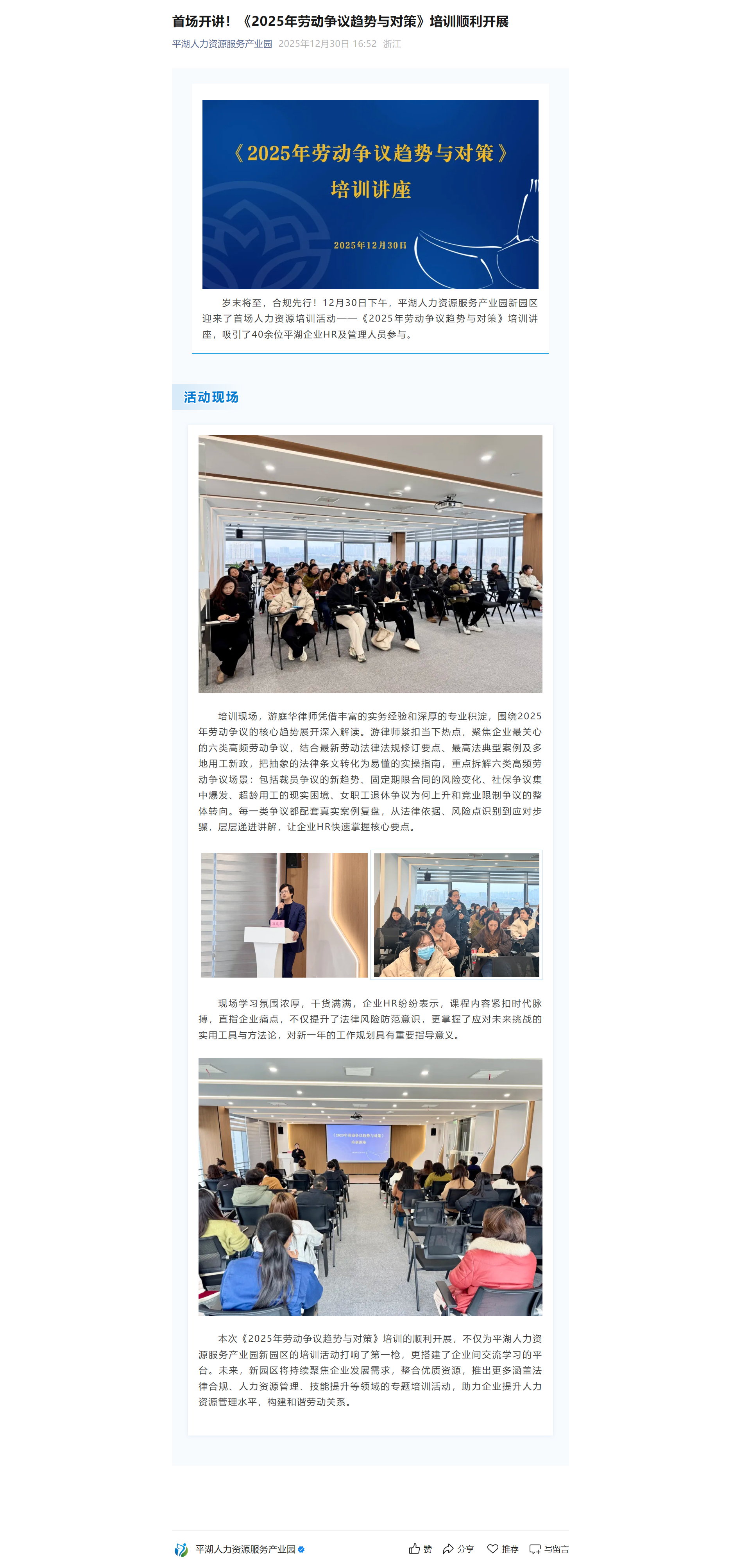 首场开讲!《2025年劳动争议趋势与对策》培训顺利开展