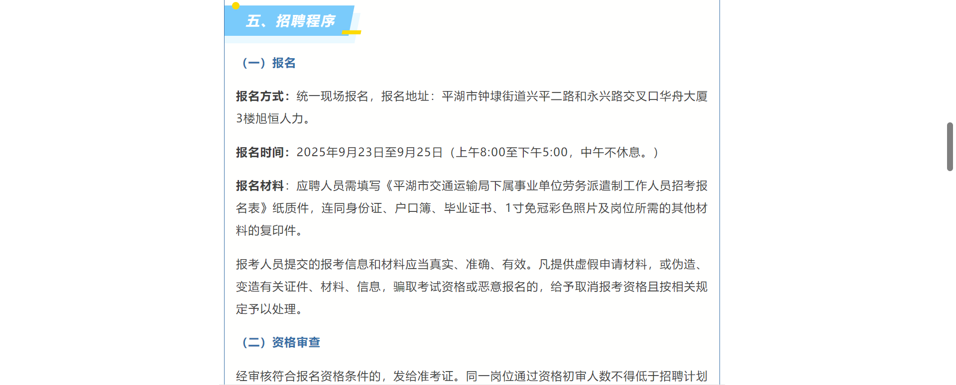 2025年下半年平湖市交通运输局下属事业单位劳务派遣制工作人员招聘公告