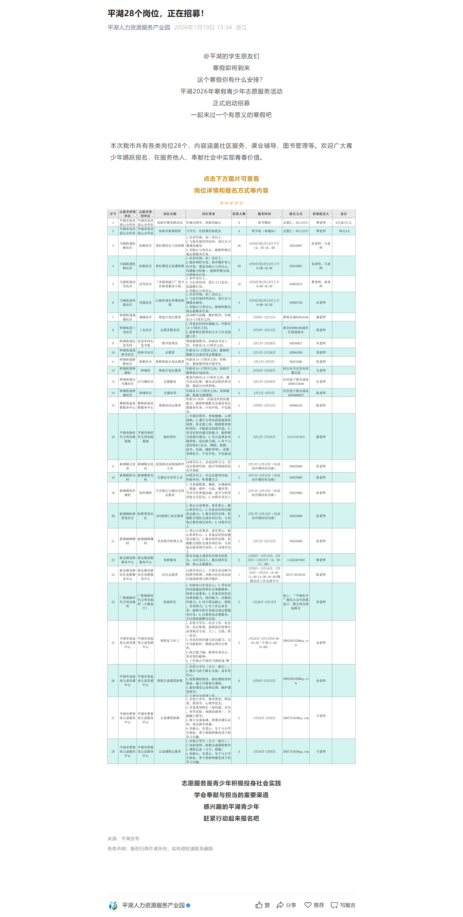 平湖28个岗位,正在招募!